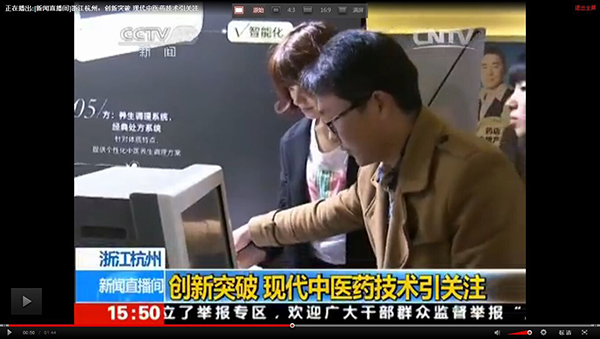 2015全國藥店年度峰會上我公司王總接受中央電視臺采訪,就目前中醫(yī)診療設備及中草藥現(xiàn)代化進程發(fā)表自己的見解。